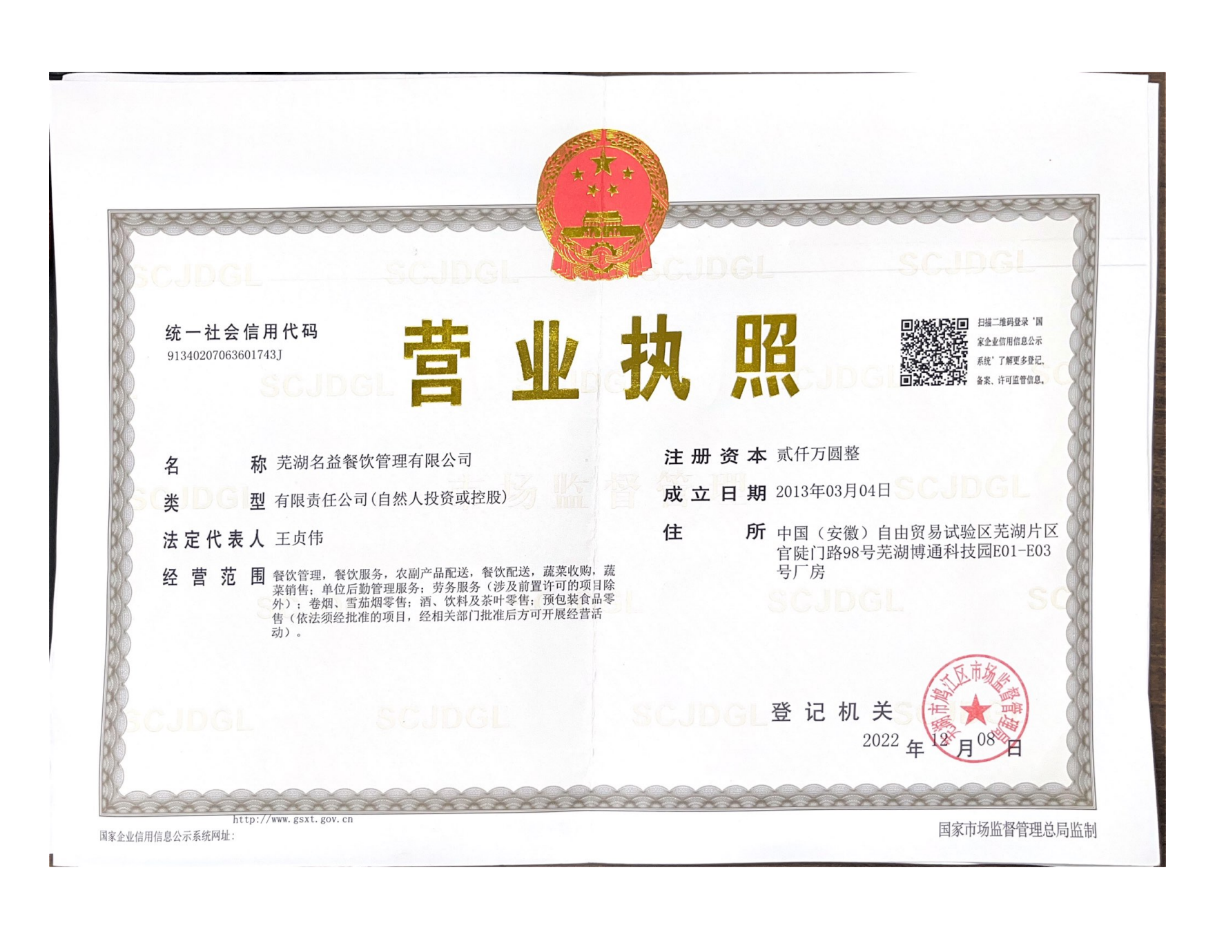 地址:蕪湖市鳩江區官陡門路98號博通科技園名益餐飲管理有限公司